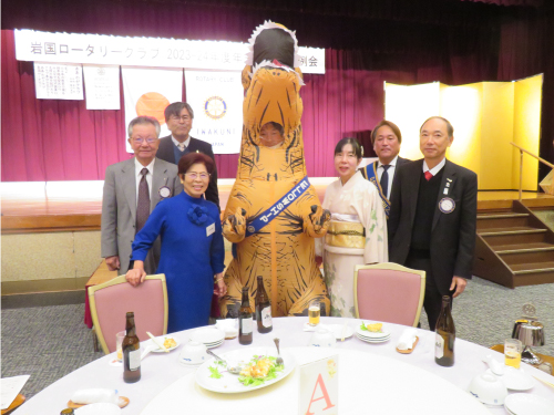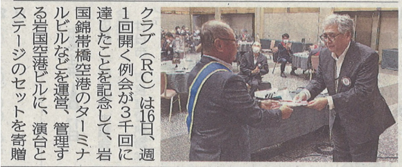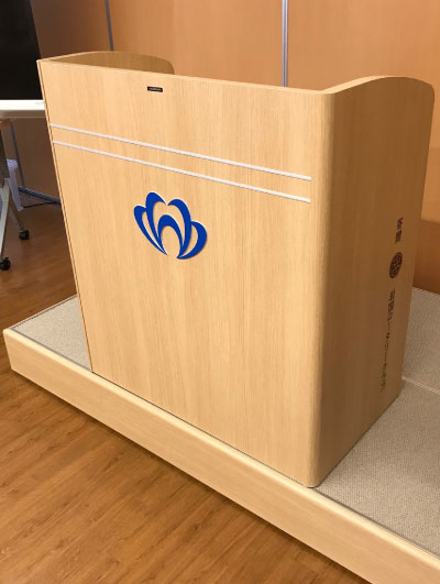 3000回例会を記念し、岩国錦帯橋空港を管理する「岩国空港ビル」に、演台とステージのセットを寄贈しました。演台は高さ100cmで明るい木目調。空港のシンボルマークをあしらっています。イベントなどに活用されるそうです。