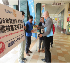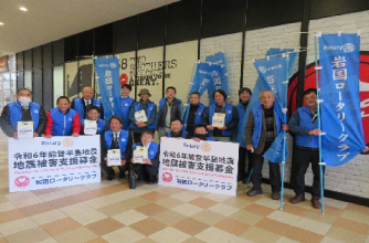 藤本会長、山本副会長、中村職業奉仕委員長の3名が石川県社会福祉協議会へ赴き、街頭募金と合わせて100万円を復興支援した。