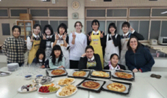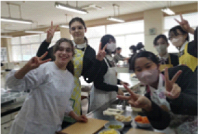 交換留学生と高水高校生徒7名による「ピザ・大福作り」やカードゲームで遊びながら国際交流を実施。