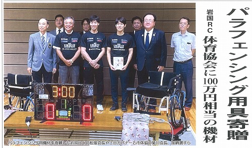 岩国市体育協会へ寄贈したパラフェンシング競技用器材が