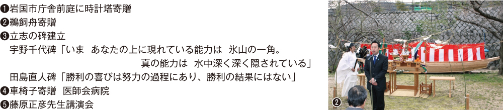 青少年奉仕活動の一環として、素晴らしい功績を残した岩国の偉人たちの志や生き方など綴った書籍 「いのちに輝きを-岩国偉人物語-」(著者:佐古利南氏 元岩国市教育委員会教育委員長)を、岩国市内高等学校(9校)、図書館(8館)、専門学校、看護学校へ各2冊寄贈。